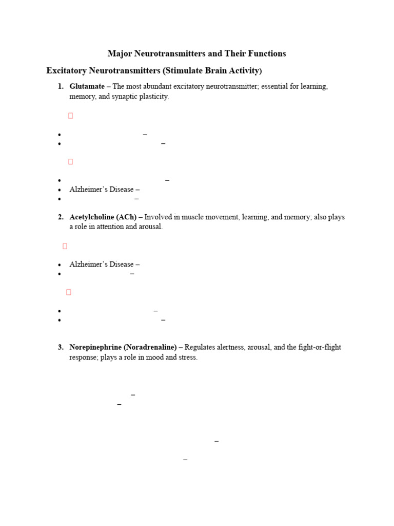 Neurotransmitter Deficiency Disorders Excess Disorders