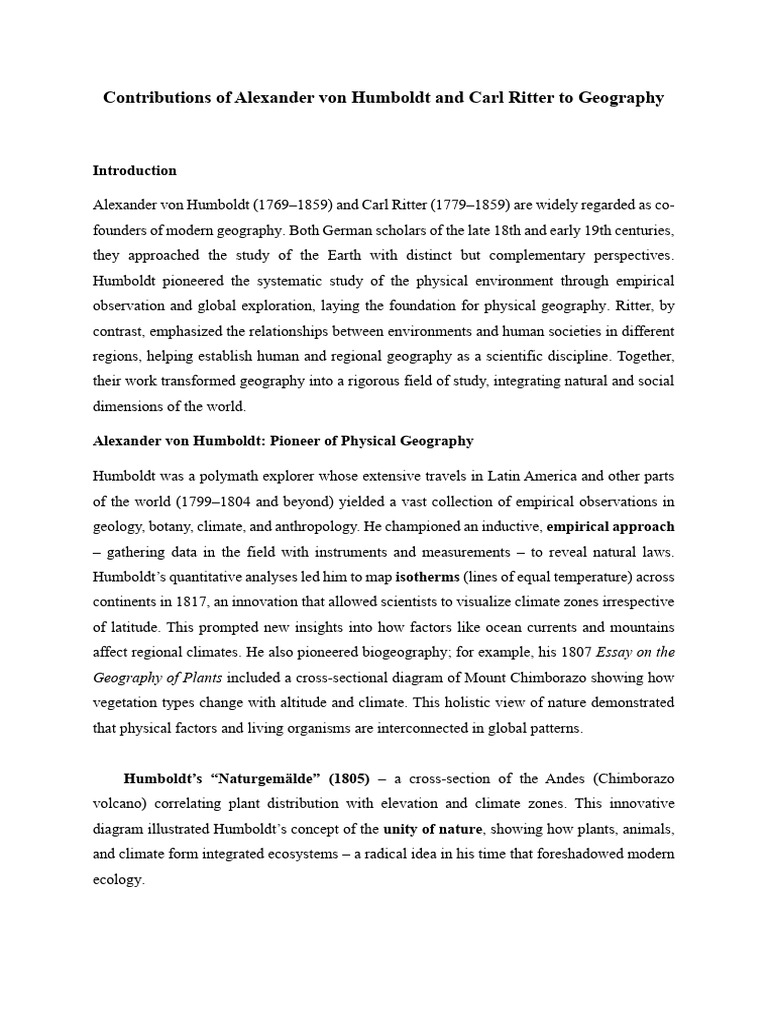 Contributions of Alexander von Humboldt and Carl Ritter to Geography