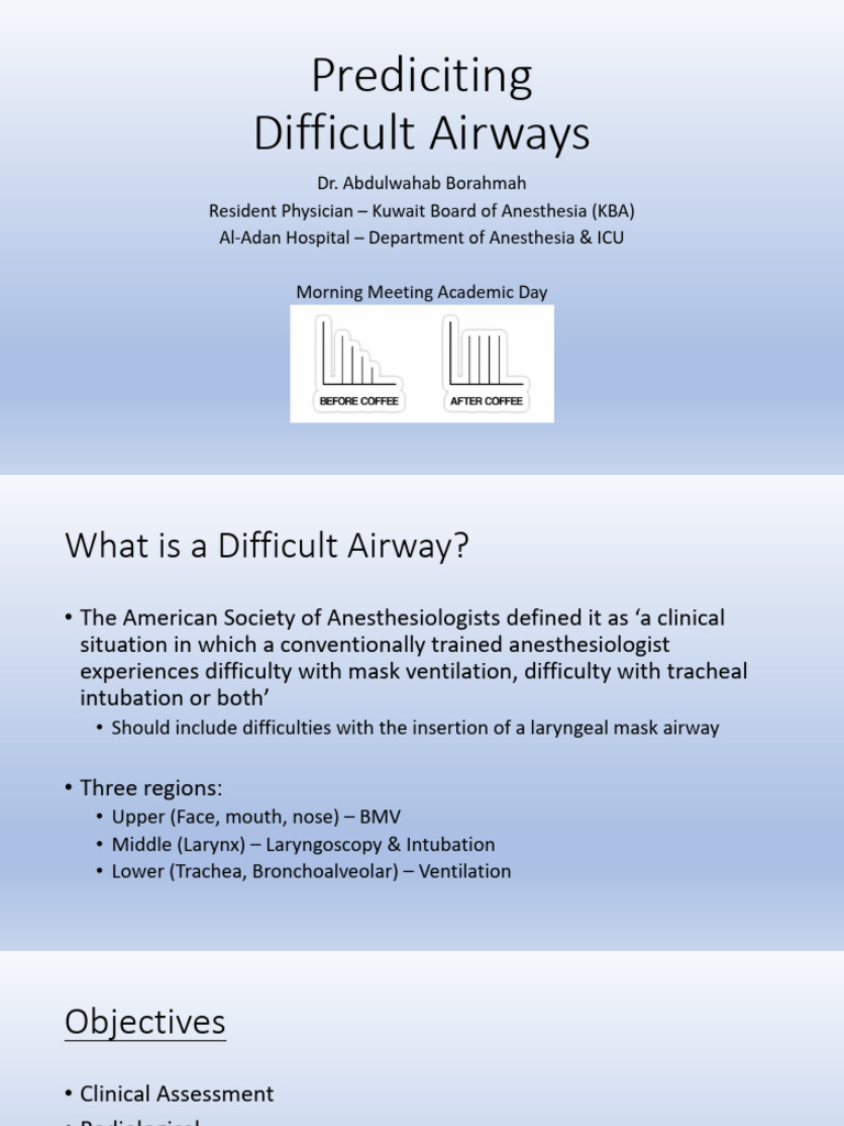 • Ralph S Vaughan, Predicting difficult airways, BJA CEPD Reviews, Volume 1,