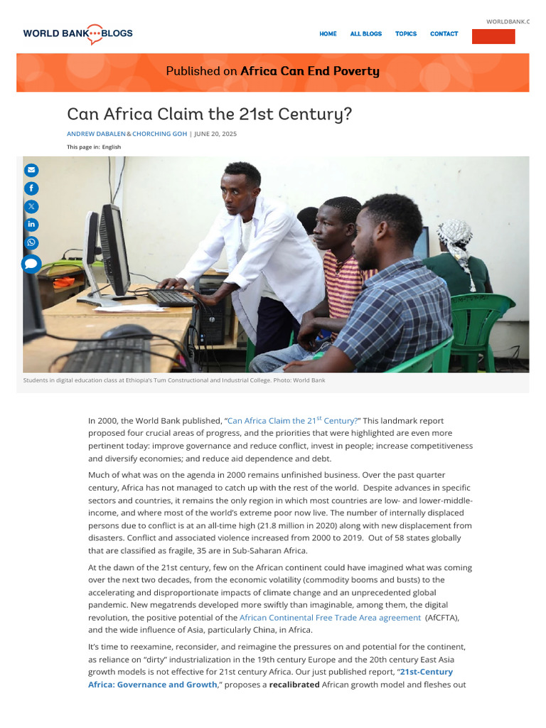 In 2000, the World Bank published, “Can Africa Claim the 21st Century?” This landmark report