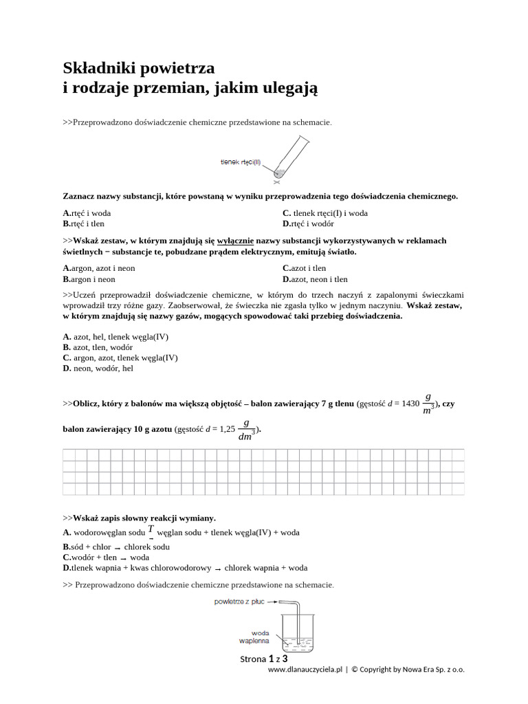B. tlenek węgla(IV), gęstość II. większą od gęstości azotu.