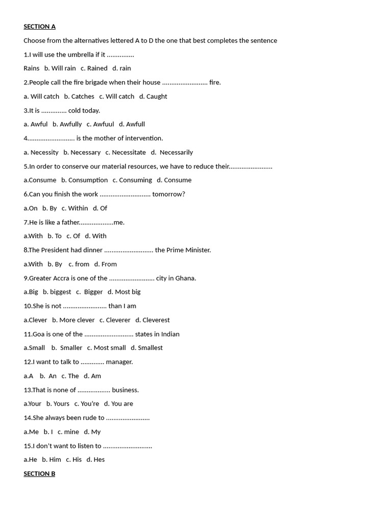 Choose from the alternatives lettered A to D the one that best completes the sentence
