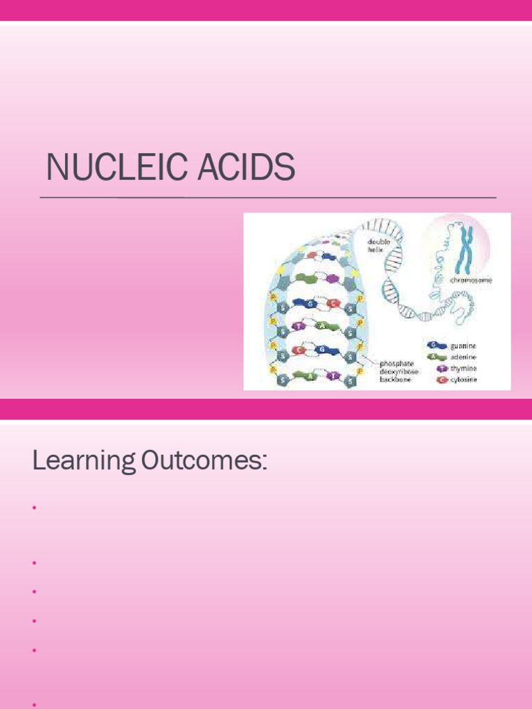 • RNA: Ribonucleic Acid: Occurs in all parts of cell