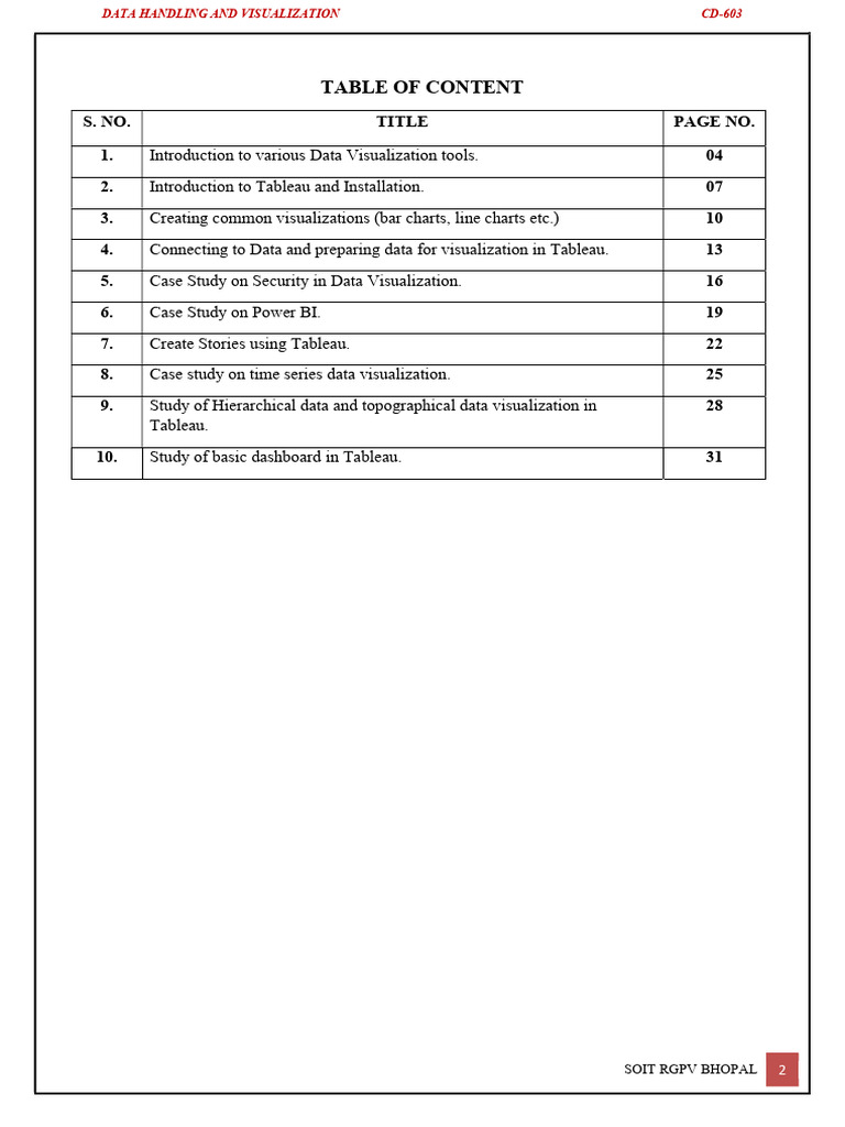 DATA HANDLING AND VISUALIZATION CD-603