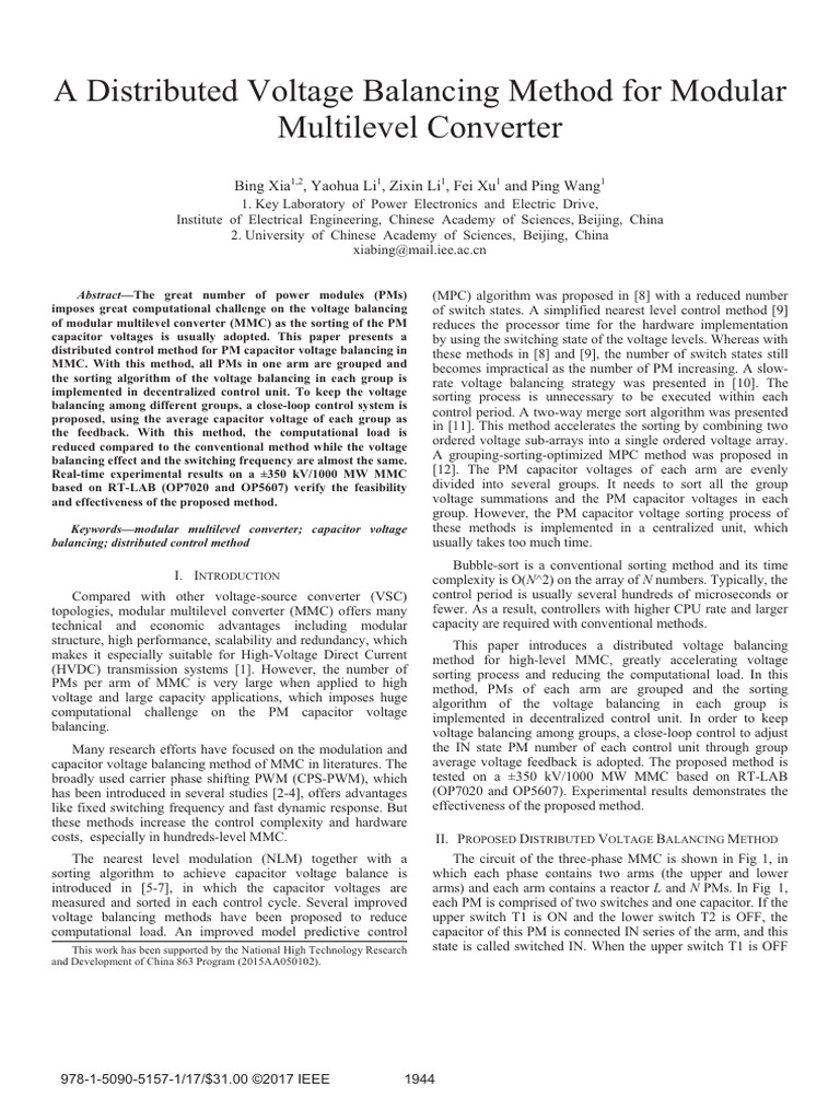 Keywords—modular multilevel converter; capacitor voltage these methods is implemented in a centralized unit, which
