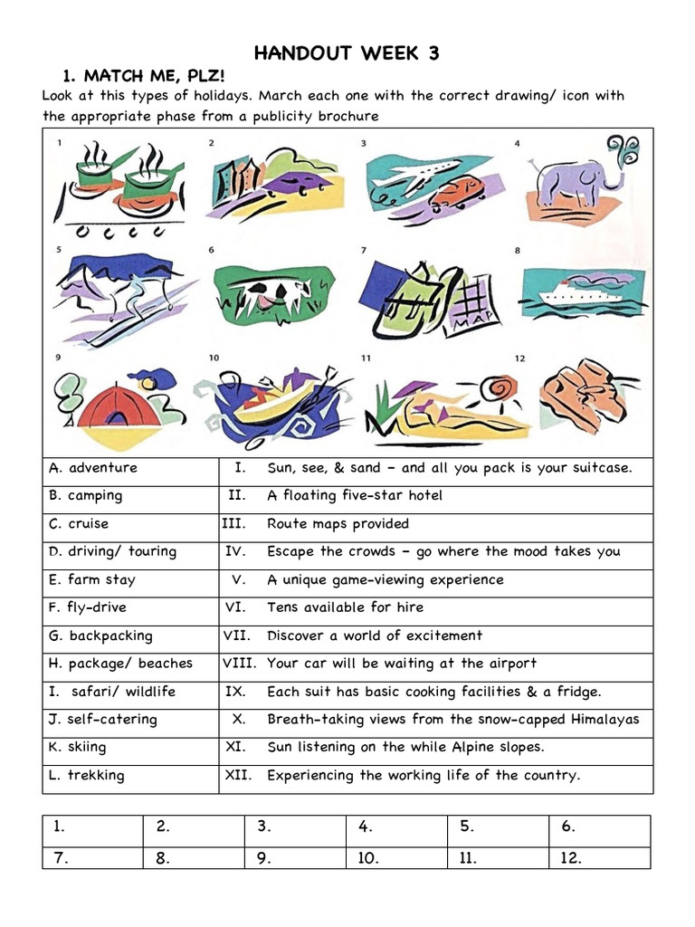 Look at this types of holidays. March each one with the correct drawing/ icon with