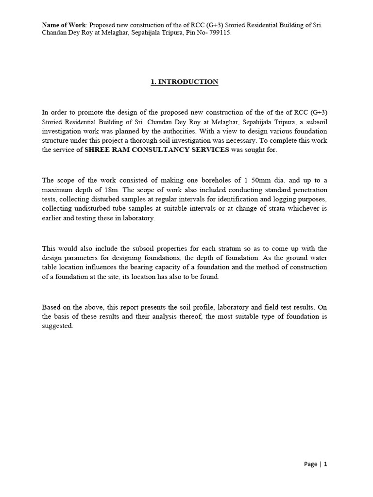 Topographically the bore hole is lying in a plain land of RL 100m. Soil profile were drawn on