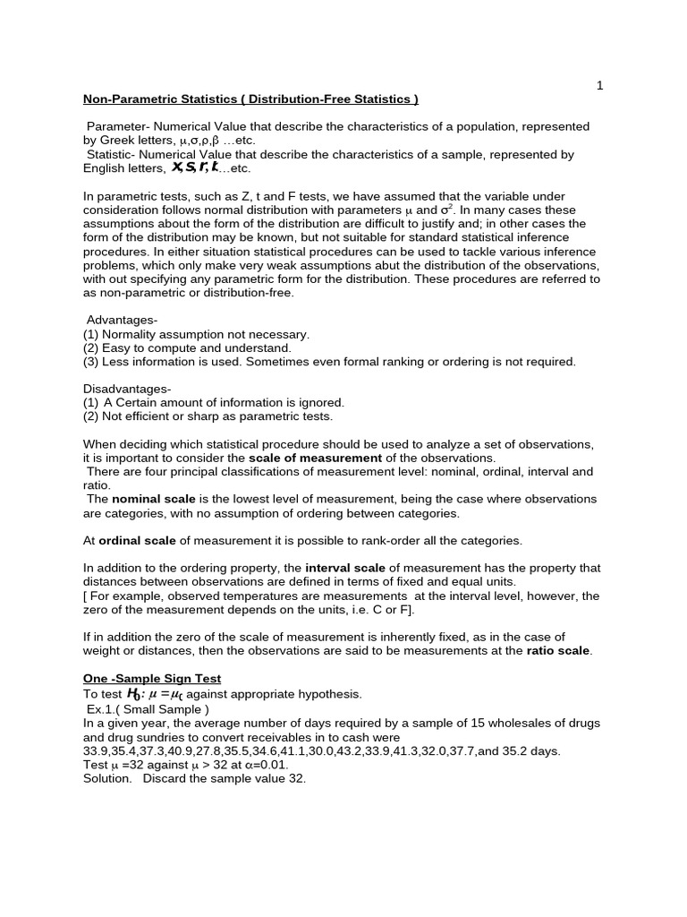 Non-Parametric Statistics ( Distribution-Free Statistics )