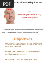 of alternatives, purchase decision, and post-purchase behavior. I'll use the example of purchasing