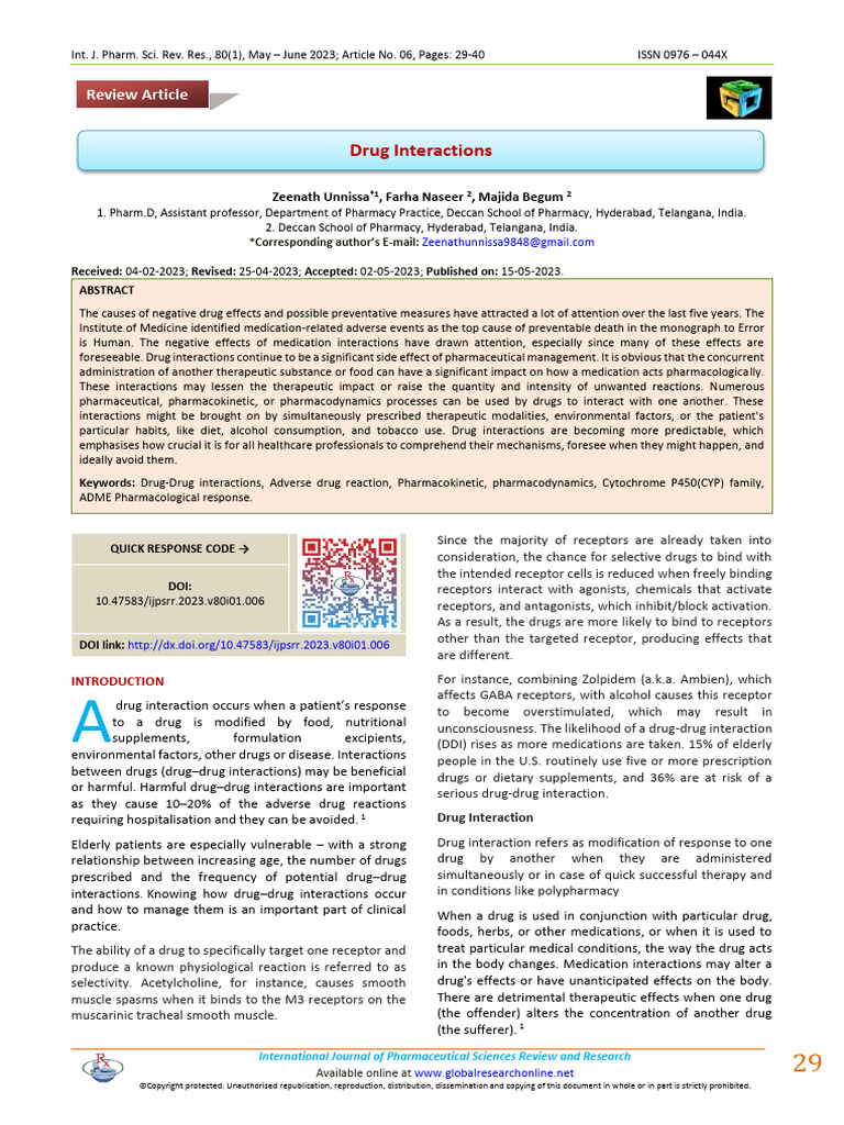 Int. J. Pharm. Sci. Rev. Res., 80(1), May – June 2023; Article No. 06, Pages: 29-40 ISSN 0976 – 044X