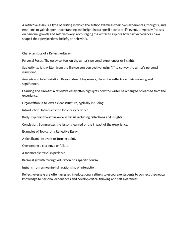 Characteristics of a Reflective Essay: