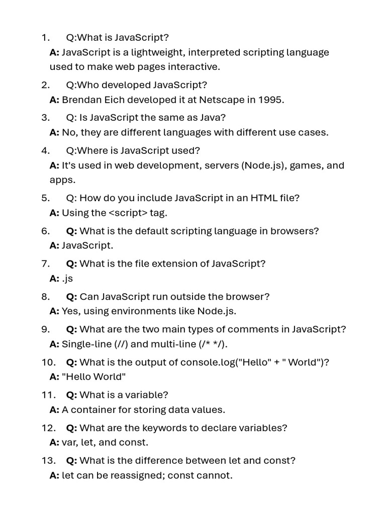 1. Q:What is JavaScript?