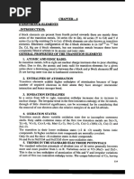 The document discusses various properties and trends of d-block and f-block elements, including ionization energy, magnetic nature, complex formation, and catalytic properties. It highlights the formation of colored ions, interstitial compounds, and alloy formation, as well as specific reactions and compounds related to transition metals. Additionally, it covers the characteristics of lanthanides and actinides, emphasizing their general properties, reactivity, and the impact of lanthanoid and actinoid contraction.