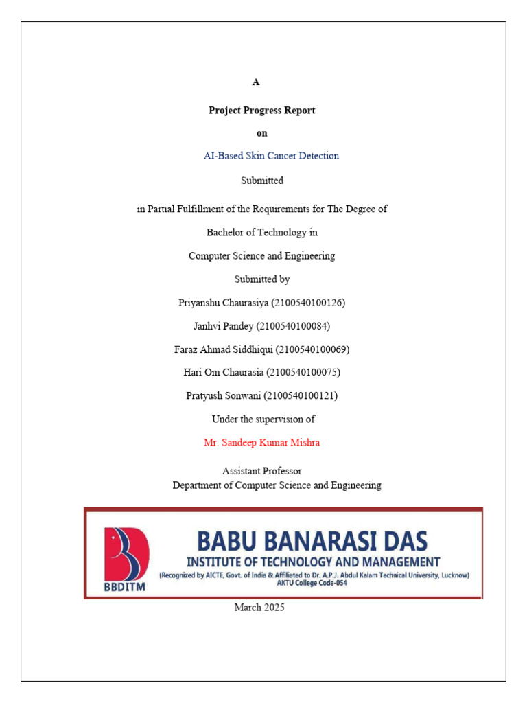 This is to certify that the project entitled “AI-Based Skin Cancer Detection” submitted by Priyanshu