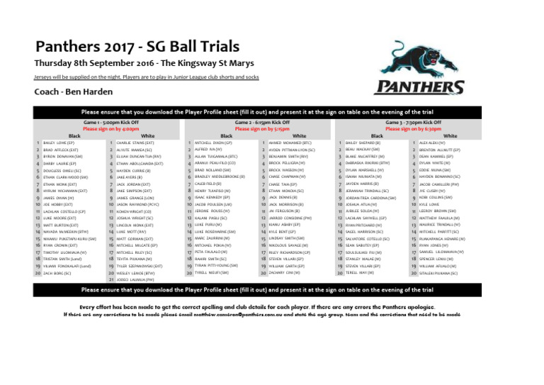 If there are any corrections to be made please email matthew.cameron@panthers.com.au and state the age group, team and the corrections that need to be made