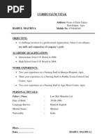 6 Months Experience of Staff Nurse in Govt. Hospital Chhindwara.