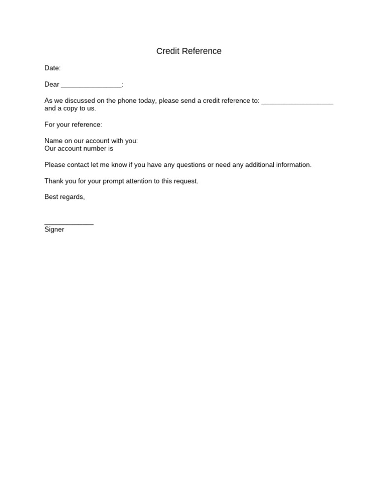 As we discussed on the phone today, please send a credit reference to: ___________________