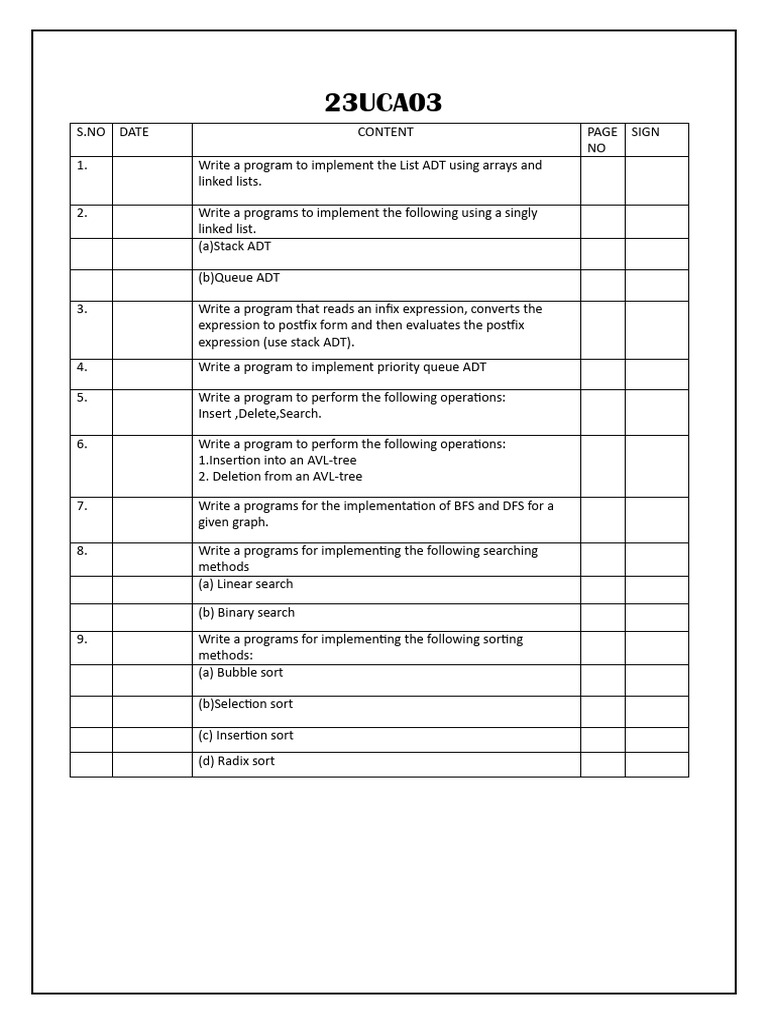 S.NO DATE CONTENT PAGE SIGN