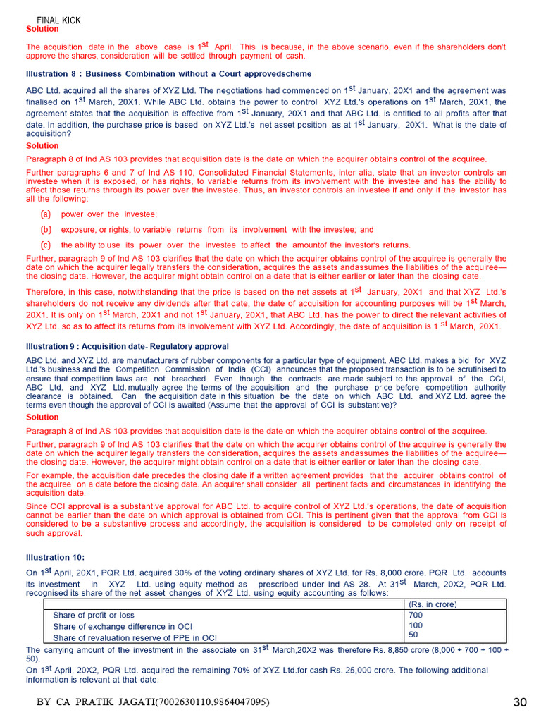 XYZ Ltd. so as to affect its returns from its involvement with XYZ Ltd. Accordingly, the date of acquisition is 1 st March, 20X1.