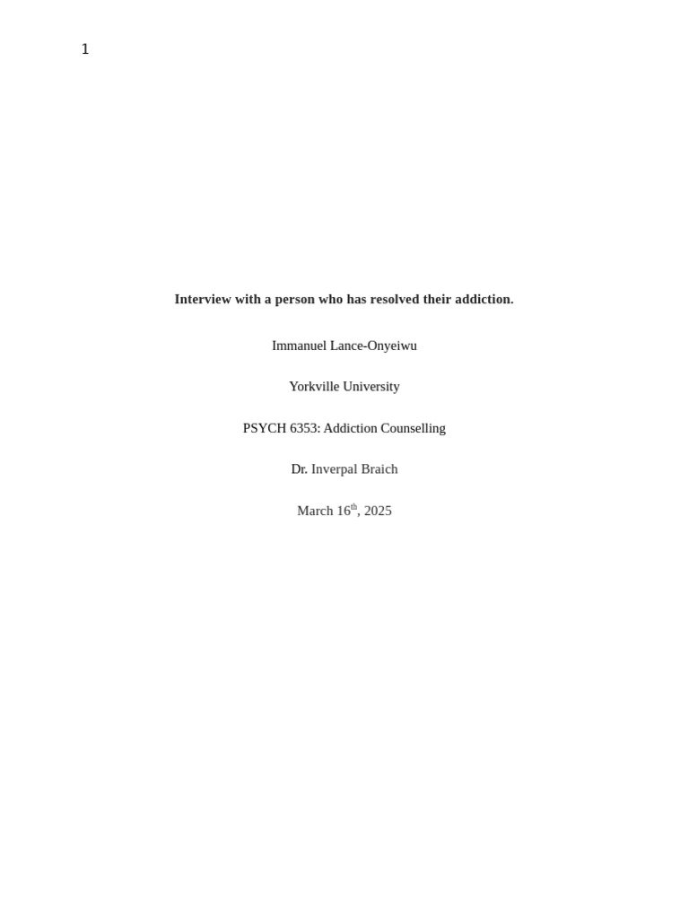 PSYCH 6353: Addiction Counselling