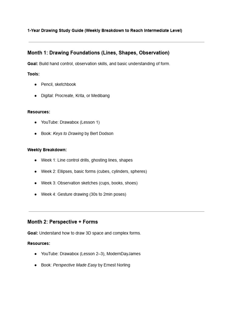 1-Year Drawing Study Guide (Weekly Breakdown to Reach Intermediate Level)