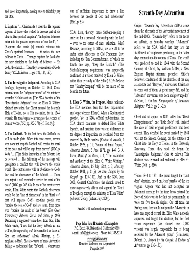 449); "… [T]he divine institution of the Sabbath is to Irwin, Mark of the Beast, p. 1; "The Inspiration "Investigative Judgment." (See #6 below.) This