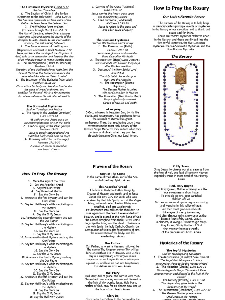 of Mary, the first among believers Said on Wednesdays and Sundays five Joyful Mysteries, the five Luminous