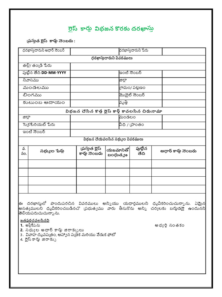రైస్ కార్డ్ విభజన కొరకు దరఖాస్తు