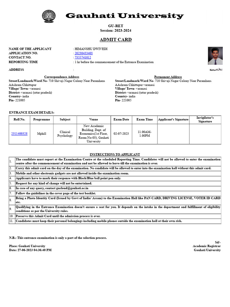Date: 27-06-2023 04:36:40 PM Gauhati University