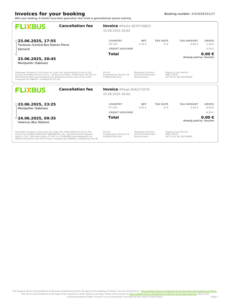 Cancellation fee Invoice #flixpt-3042273379