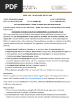 programmes and subjects to which they have originally been admitted. Such a student shall fill an application form (downloaded