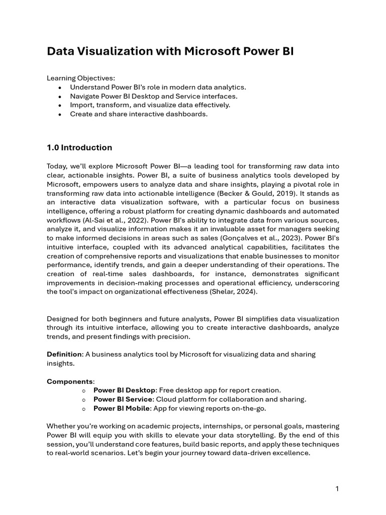 Designed for both beginners and future analysts, Power BI simplifies data visualization