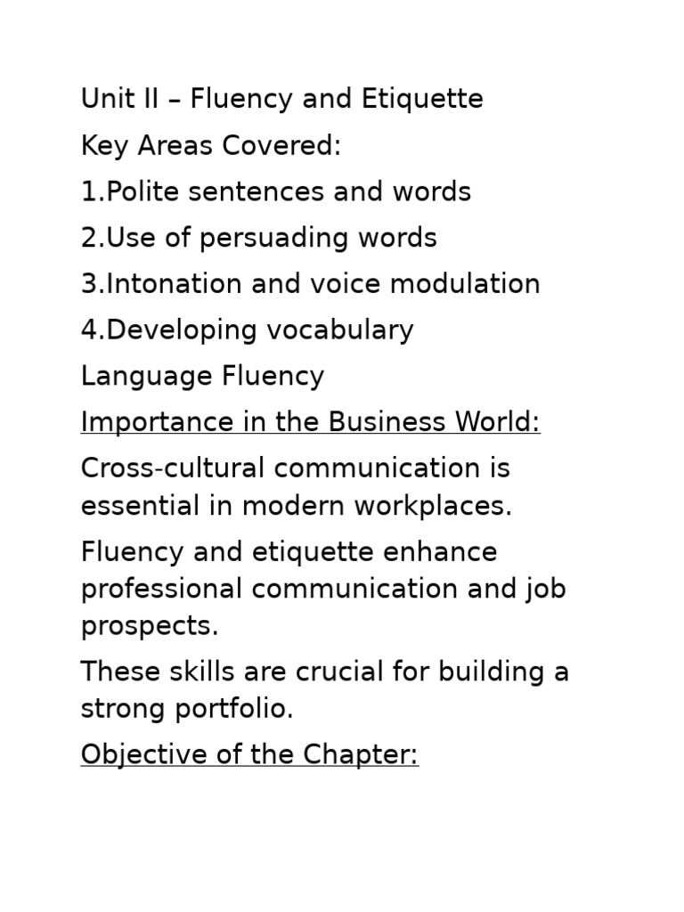 Unit II – Fluency and Etiquette