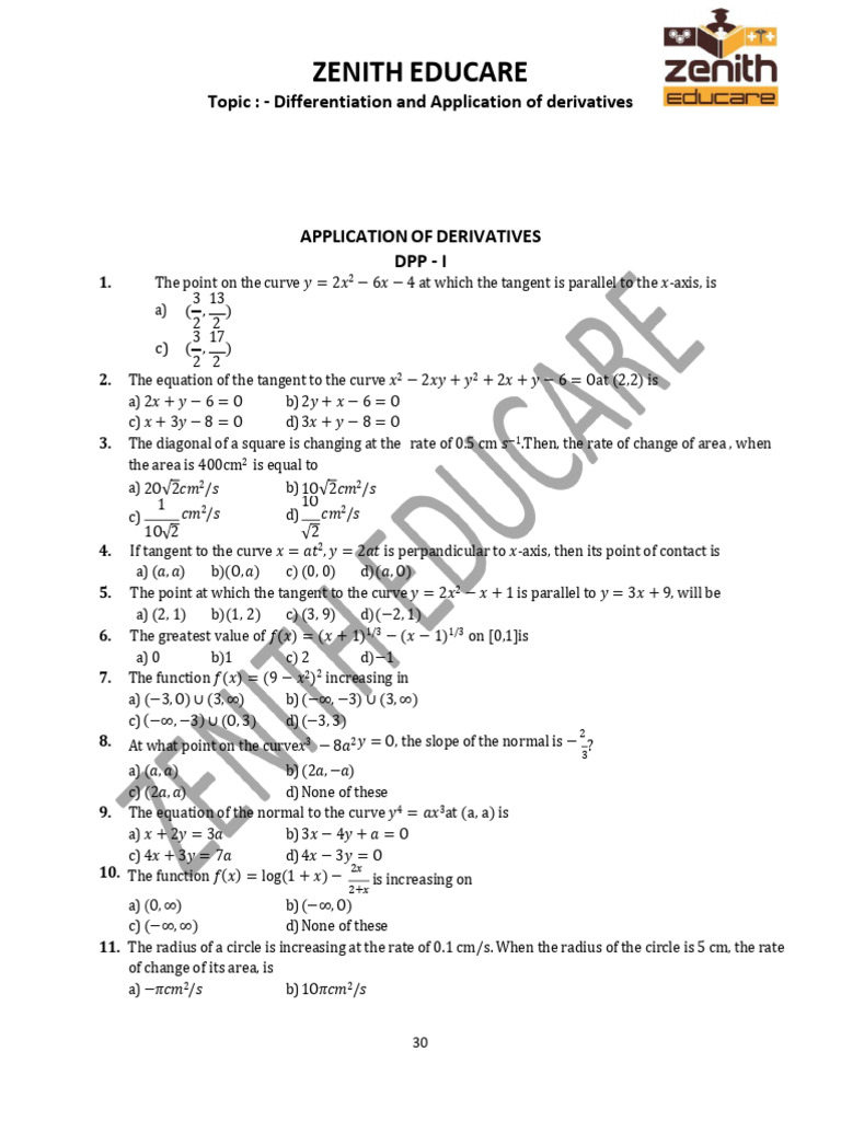 30. If the function �(�) = �� + �� + 11� − 6 satisfies the condition of Rolle’s theorem in [1, 3] and