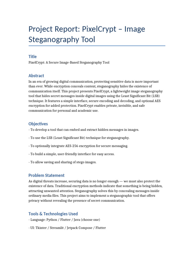 communication itself. This project presents PixelCrypt, a lightweight image steganography