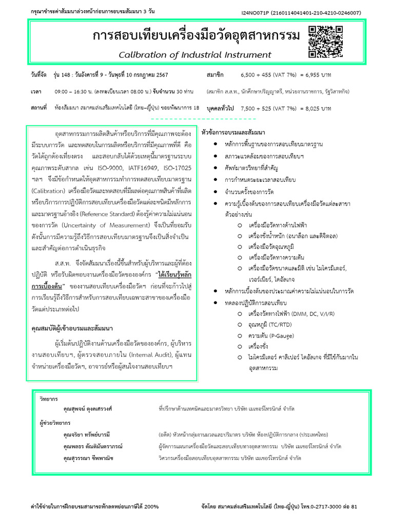 จำหน่ายเครื่องมือวัดฯ, อาจารย์หรือผู้สนใจงานสอบเทียบฯ อุตสาหกรรม