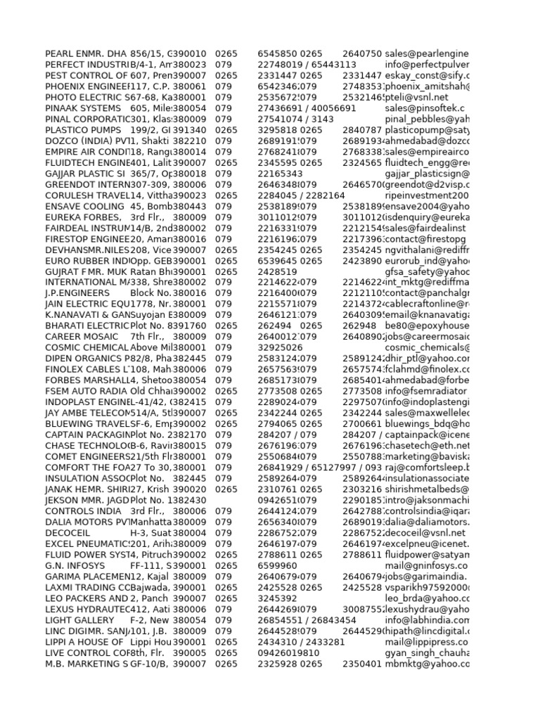 FINE RUBBER INDIA891/2, GI 390010 0265 2655301 0265 2655301 shivkrisha@yahoo.co.in