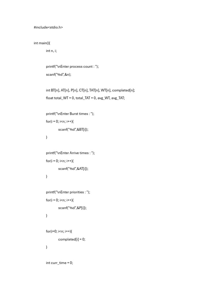 int BT[n], AT[n], P[n], CT[n], TAT[n], WT[n], completed[n];
