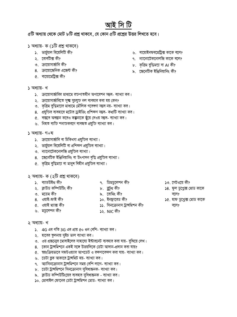 5wU Aa¨vq †_‡K †gvU 8wU cÖkœ _vK‡e, †h †Kvb 5wU cÖ‡kœi DËi wjL‡Z n‡e|