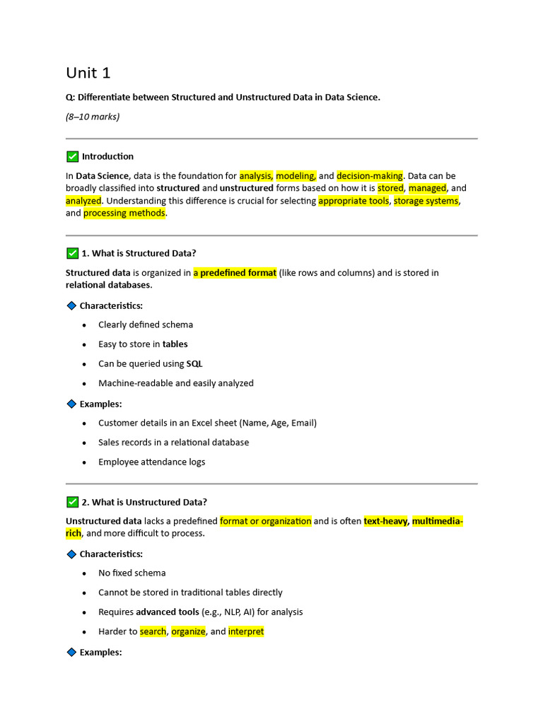 Structured and unstructured data are two fundamental categories in data science, each requiring