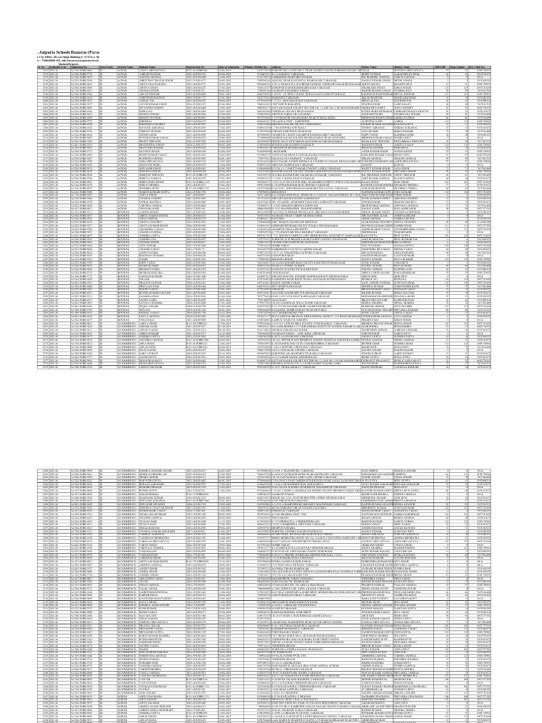 Sr No. Academic Year Admission No. Class Name Section Name Student Name Registration No Date of Admission Primary Mobile No. Address Father Name Mother Name TRP ERP Drop Update Drvr Mob No.