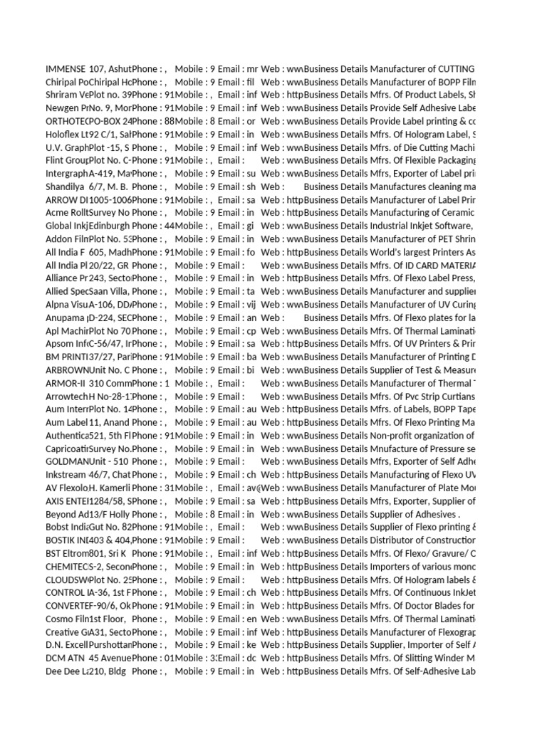 Shriram VerPlot no. 39Phone : 91Mobile : , Email : inf Web : httpsBusiness Details Mfrs. Of Product Labels, Shrink Sleeves, Alum
