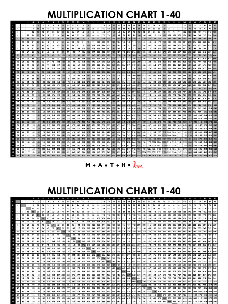 MULTIPLICATION CHART 1-40