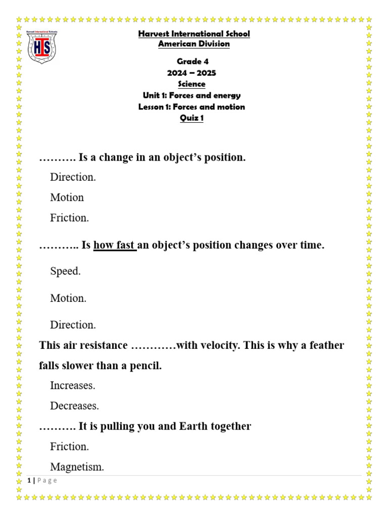 Unit 1: Forces and energy