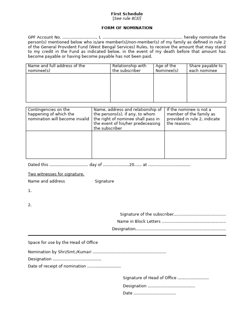 GPF Account No. ..........................., I, ................................................................ hereby nominate the