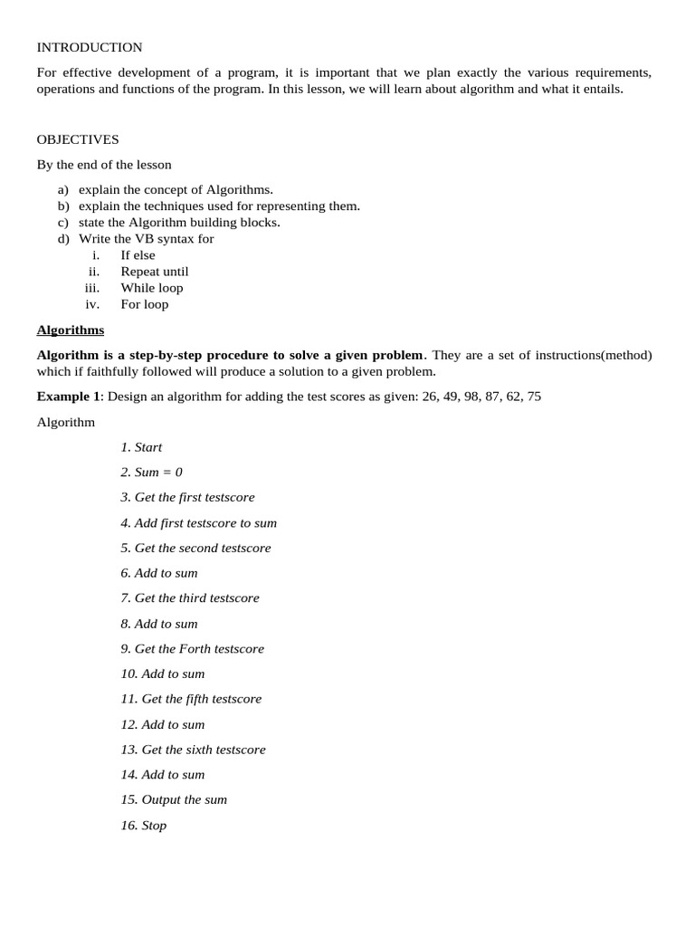 operations and functions of the program. In this lesson, we will learn about algorithm and what it entails.