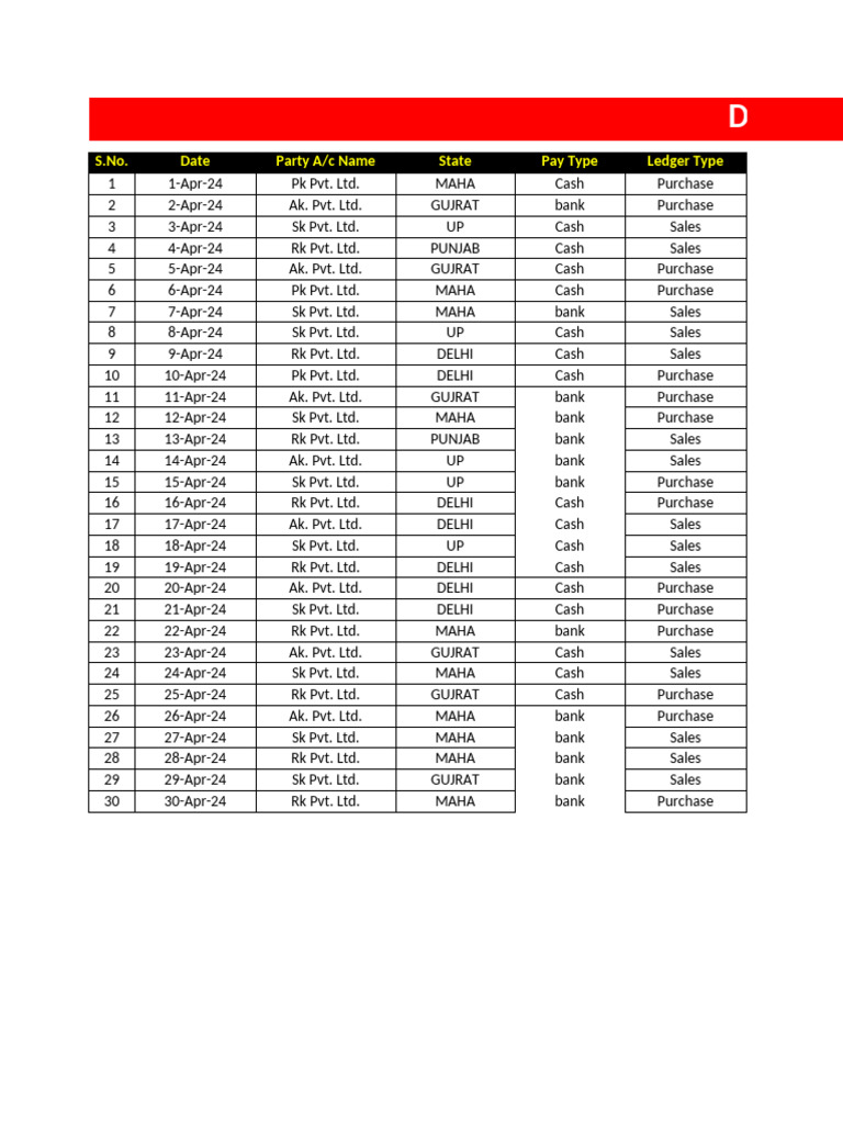 [Link]. Date Party A/c Name State Pay Type Ledger Type