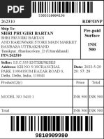 The document contains shipping details for two orders processed by DELHIVERY logistics, including recipient information, product details, and payment status. Each order has a total amount, dimensions, and a unique order number. Additionally, it notes that all disputes are subject to Rajasthan jurisdiction and outlines the store's return policy.