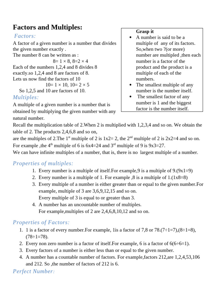 Factors and Multiples: Grasp it
