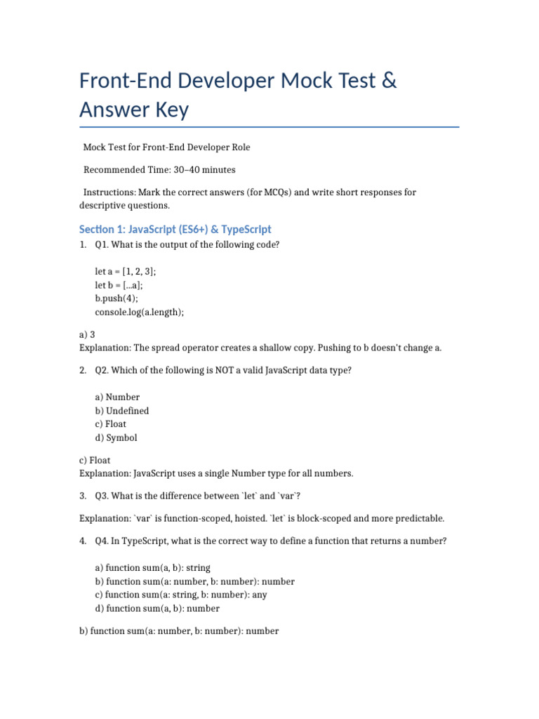 📄 Mock Test for Front-End Developer Role